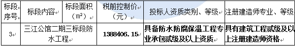2.工程規(guī)模(概況):三江公館二期三標段(地下車庫二(人防))防水工程范圍內(nèi)全部防水內(nèi)容。