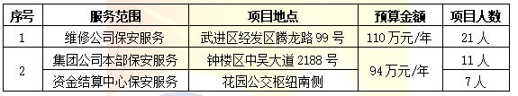 本項(xiàng)目擬確定2家中標(biāo)人,分別完成序號(hào)1、序號(hào)2范圍內(nèi)的保安服務(wù)。
