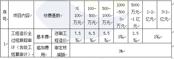 2.工程結(jié)算審核:常州經(jīng)開(kāi)區(qū)政府性投資項(xiàng)目審計(jì)咨詢服務(wù)費(fèi)計(jì)算標(biāo)準(zhǔn)(2017年)*100%,當(dāng)核減(增)額超過(guò)送審造價(jià)的10%時(shí),超過(guò)部分的審計(jì)費(fèi)用由施工單位承擔(dān);不計(jì)取基本收費(fèi)。